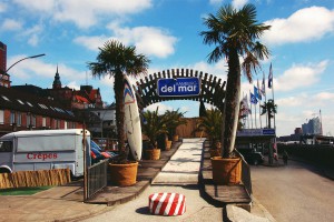 Fotograf: Mohammed Mido (17) aus Ägypten, aus der EVE in der Flughafenstraße | Ort: St. Pauli Landungsbrücken Mohammed Mido ist ein ruhiger Junge aus Ägypten. Er hat den Beach-Club fotografiert, weil ihn die Palmen an die Palmen an der Corniche in Alexandria erinnert haben.
